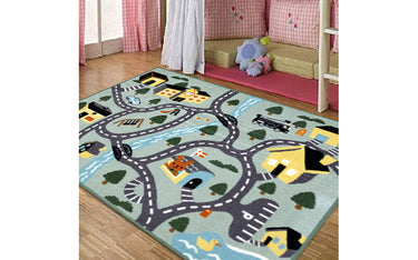 سجادة ماك سيتي ماب للأطفال بتصميم مبتكر يحاكي خريطة مدينة تساعد الأطفال على اللعب بالسيارات والقطارات والتفاعل مع العناصر المرسومة.